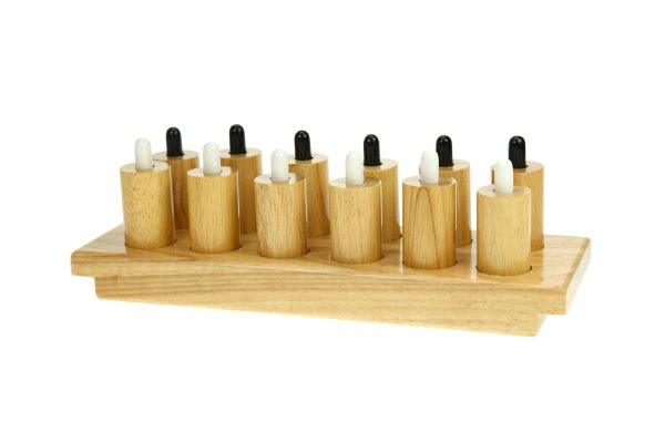 - ให้เด็กใช้นิ้วหัวแม่มือกดบนปุ่มกดทั้ง 2 ข้าง พร้อมกัน จากนั้นนำทรงกระบอกแรงกดคู่แรกวางลงในถาดเหมือนเดิม แล้วปฏิบัติเช่นเดิมกับทรงกระบอกแรงกดคู่ถัดไปจนครบ 6 คู่ เพื่อให้เด็กเปรียบเทียบแรงกดที่มีความแรงแตกต่างกัน